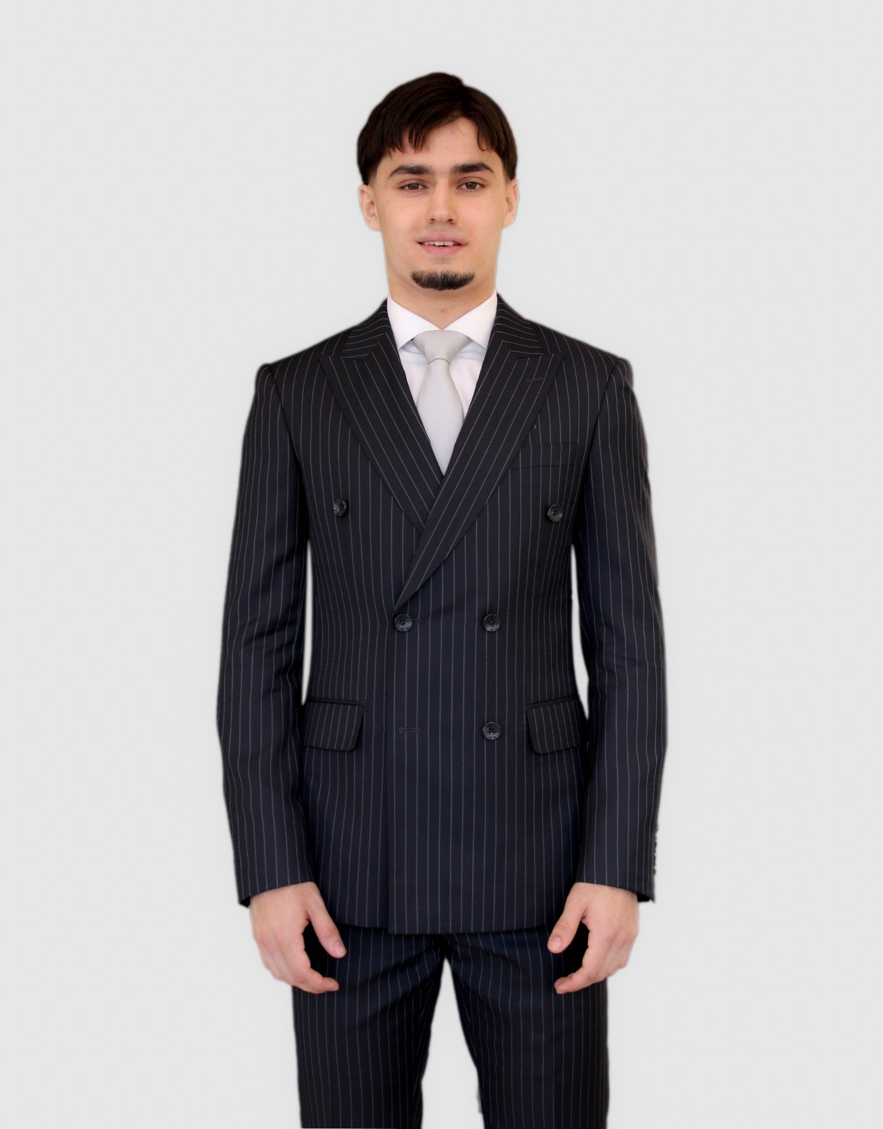 Crafted from premium fabric with crisp white pinstripes, the structured fit and sharp lines reflect both confidence and class.