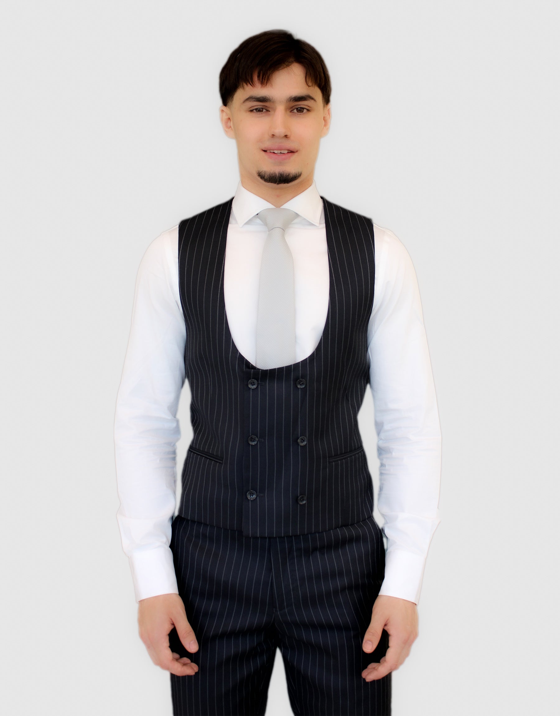 Make a commanding statement with our black double-breasted pinstripe suit — the perfect blend of timeless elegance and contemporary sophistication. Designed for men who value bold style and fine tailoring, this suit is ideal for business events, weddings, upscale dinners, and formal occasions.
