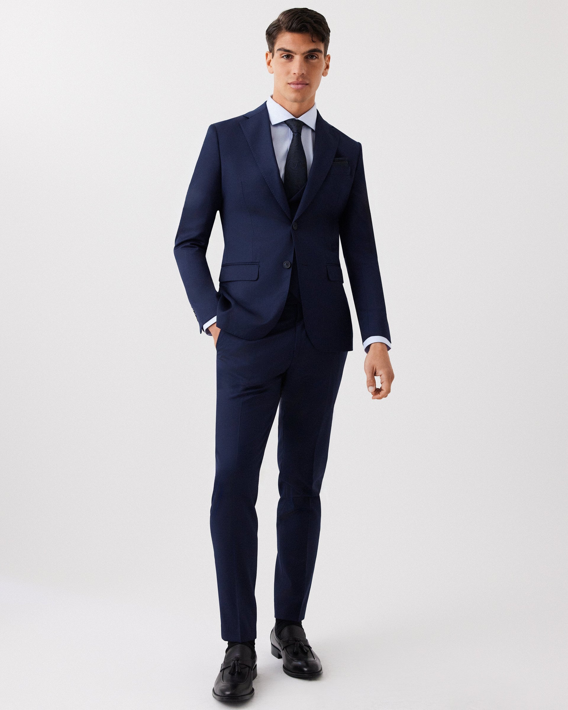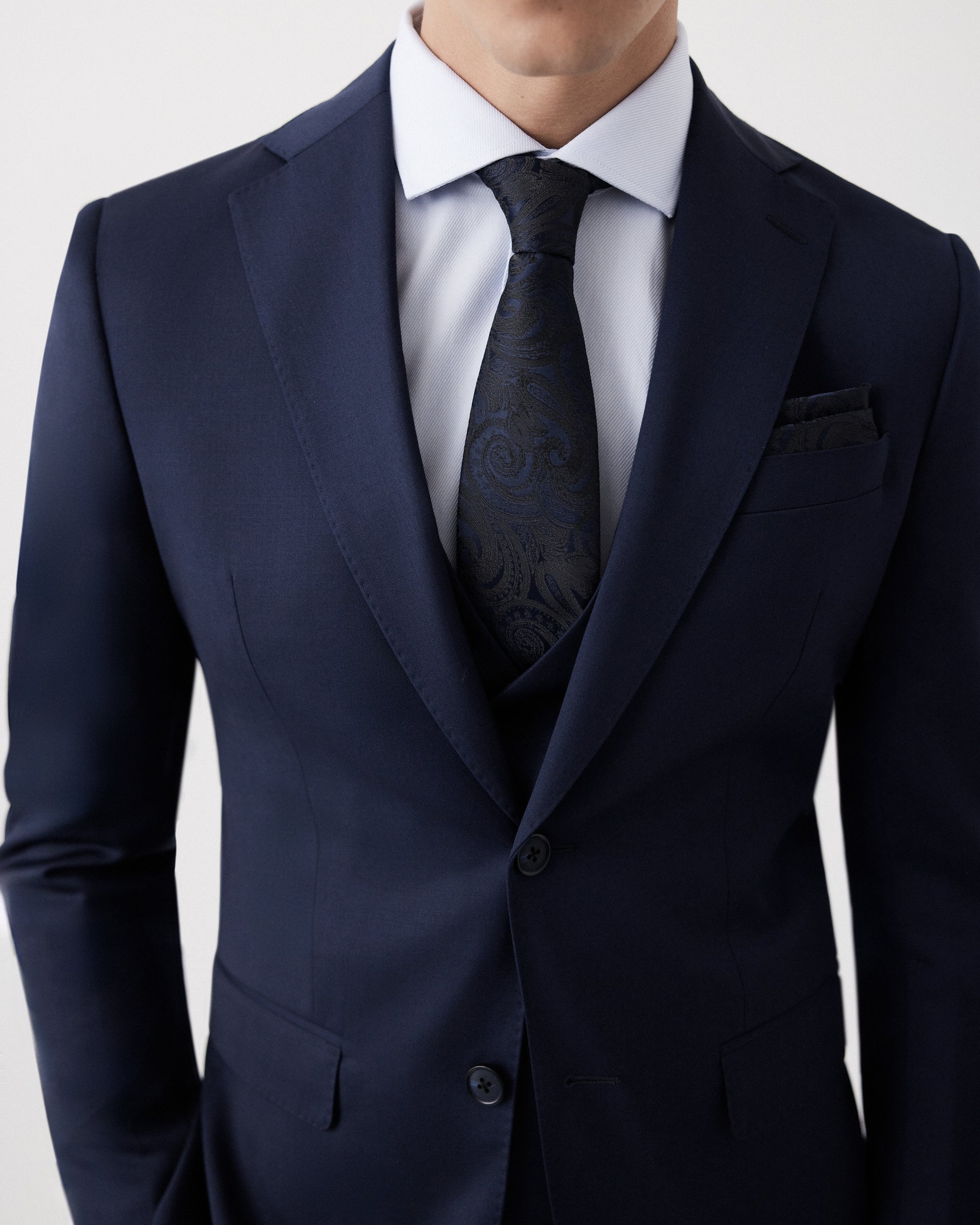 Men’s Navy Blue Wool Suit 3-Piece – Slim Fit Business & Events