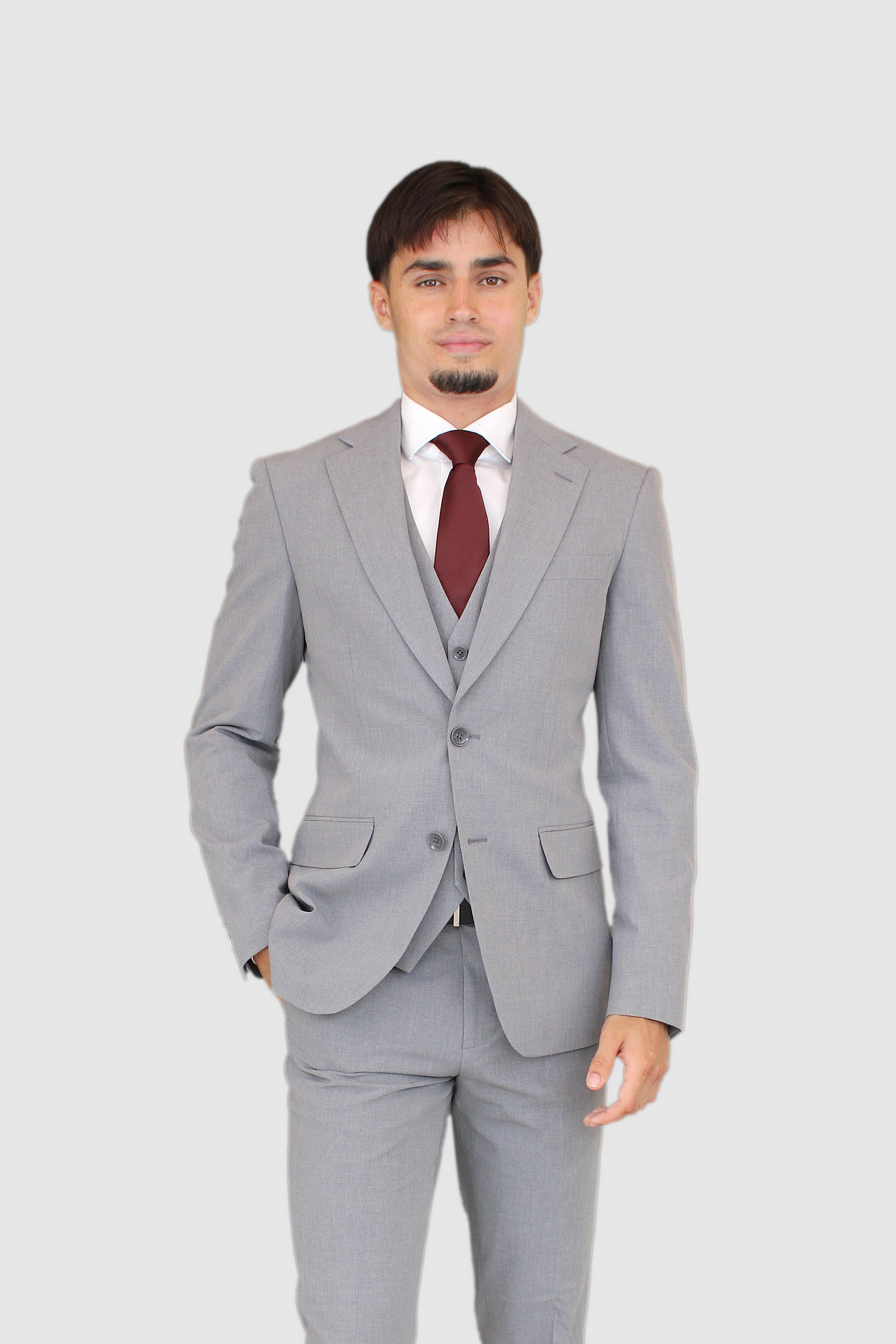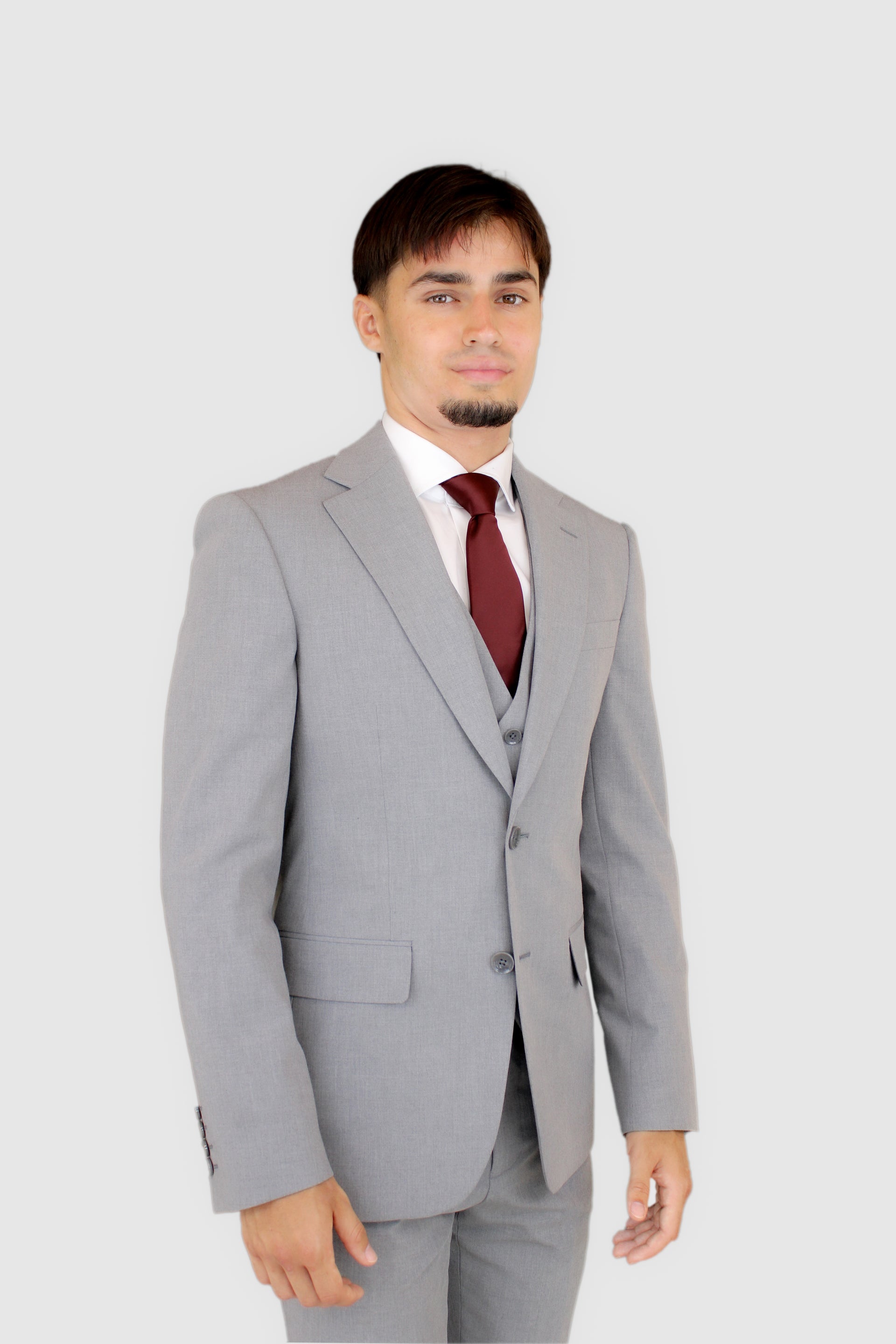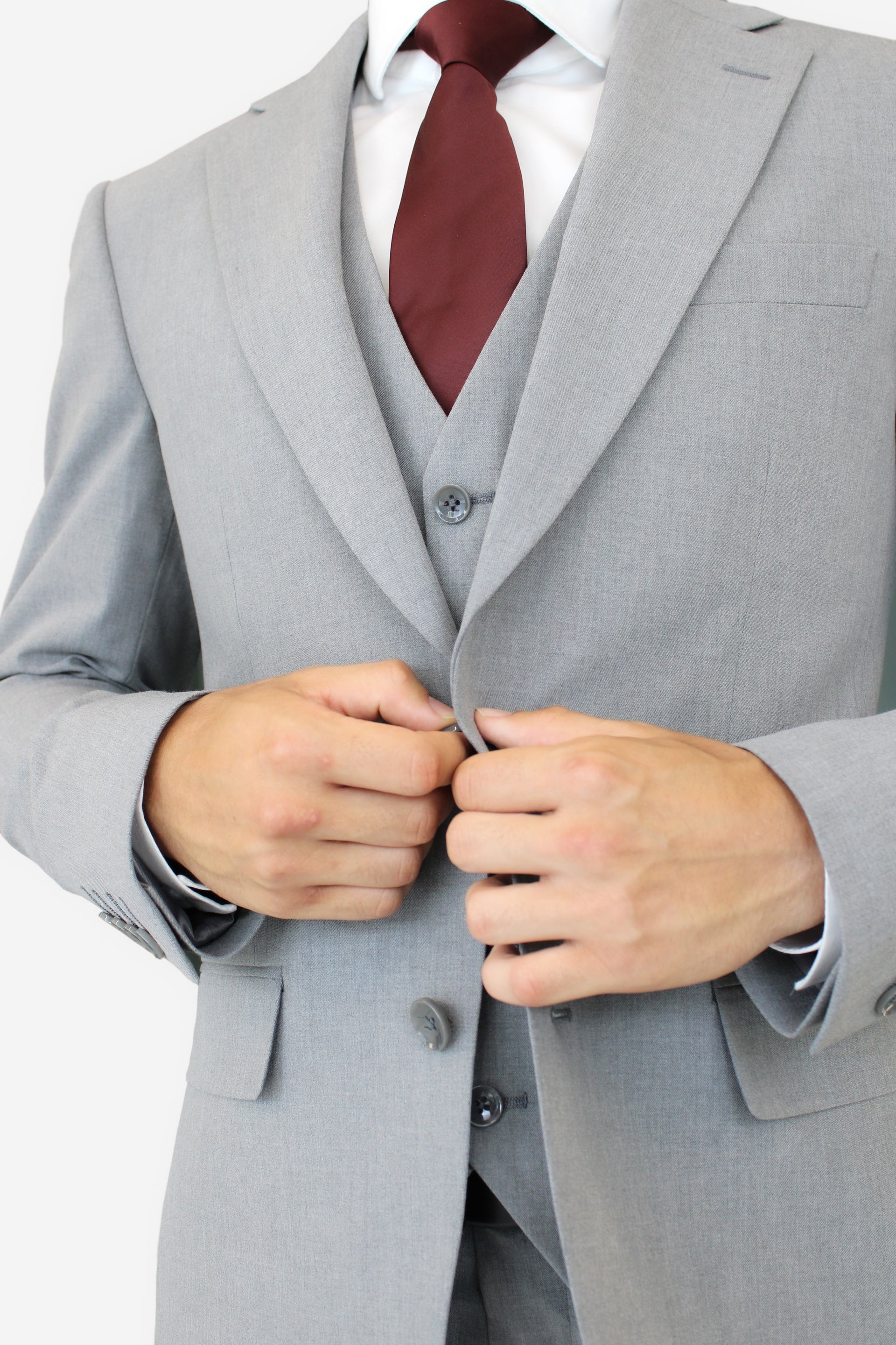 Men’s Slim Fit 3-Piece Wool Blend Suit – Light Gray