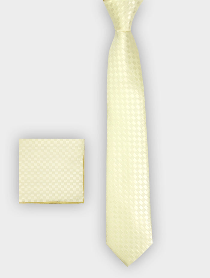 Men’s Pearl White Statement Neck Tie & Pocket Square Set – Elegant Matching Duo