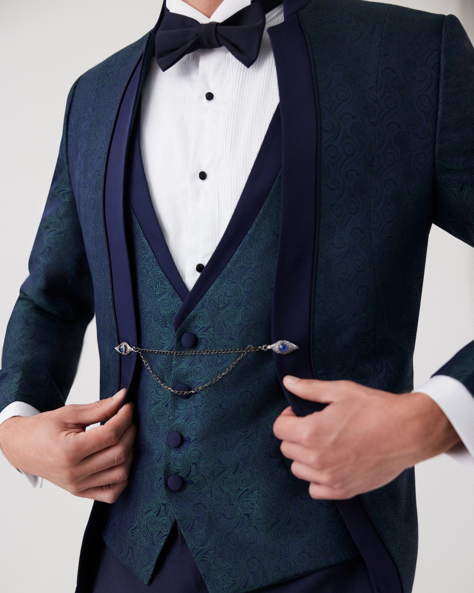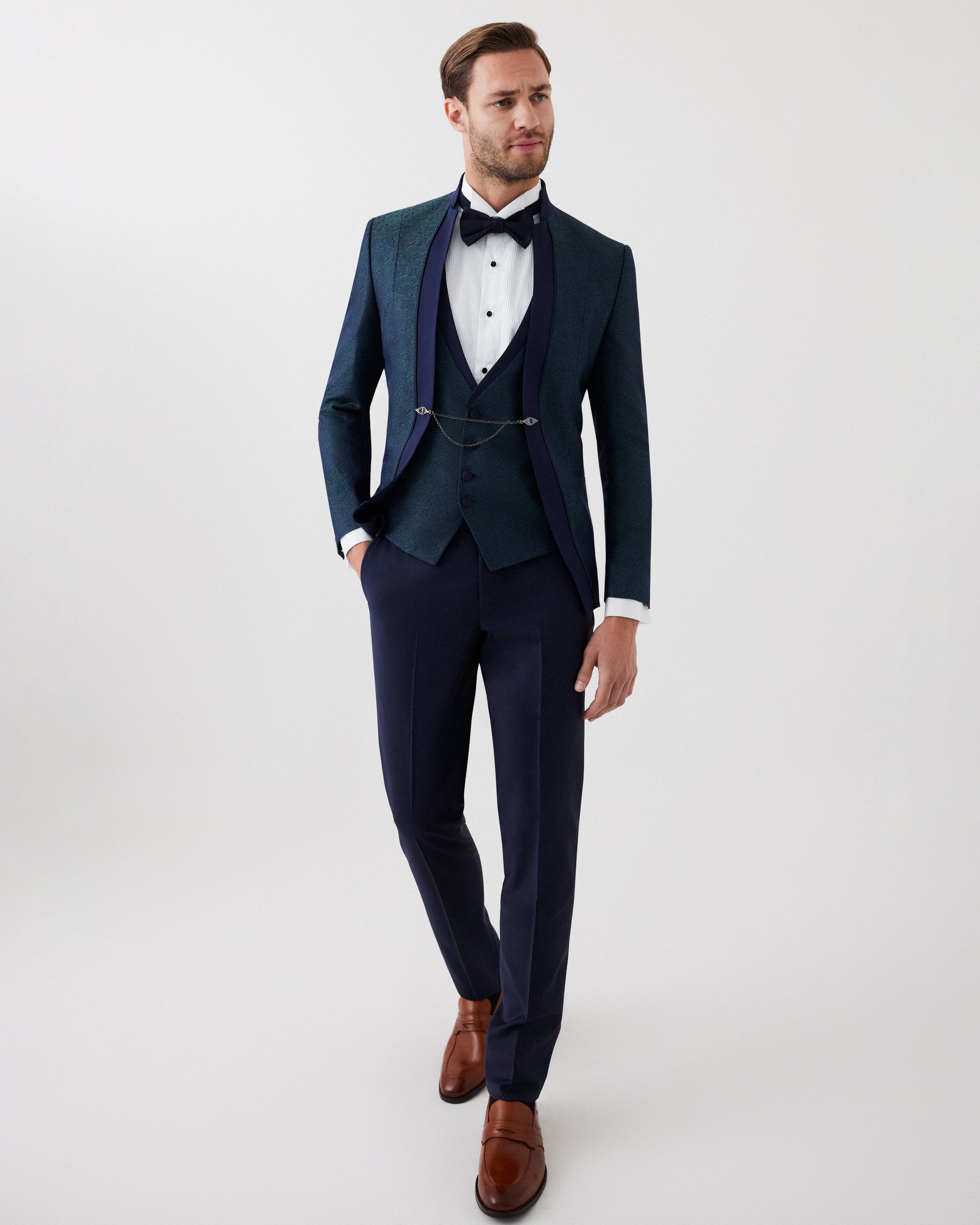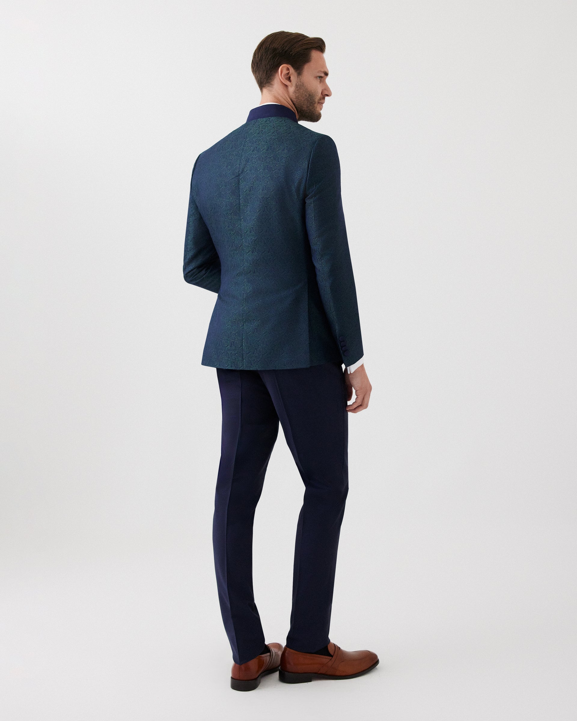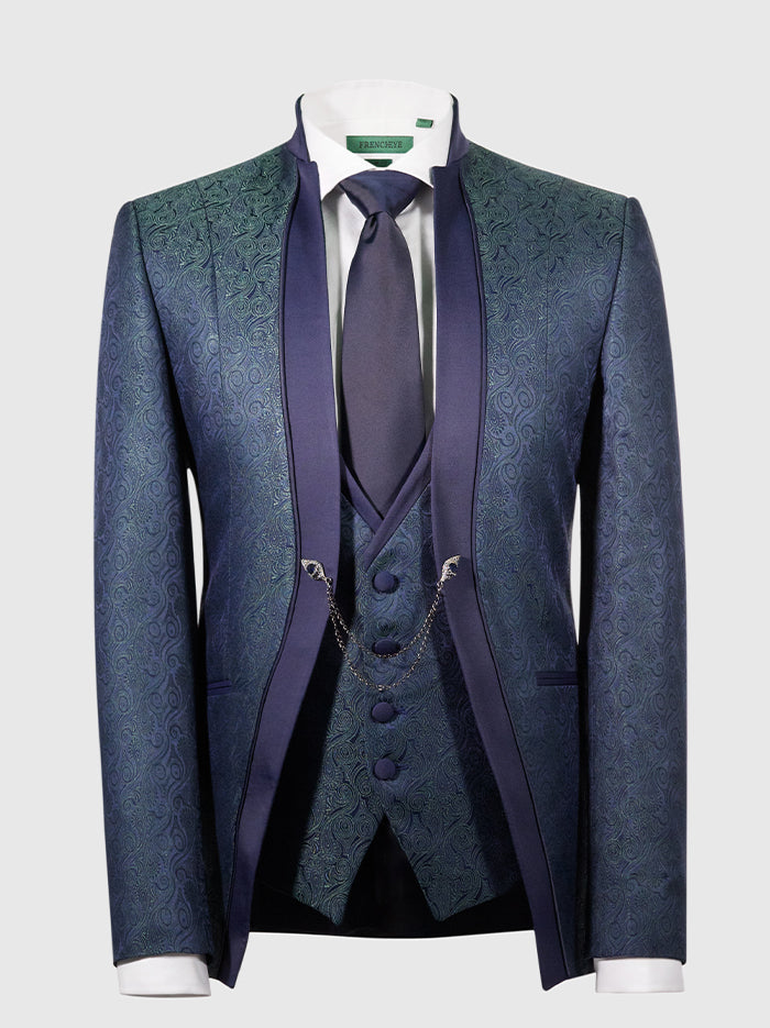 Blue & Green 3-Piece Tuxedo Suit | Luxury Fancy Fabric | Shawl Lapel Formal Wear