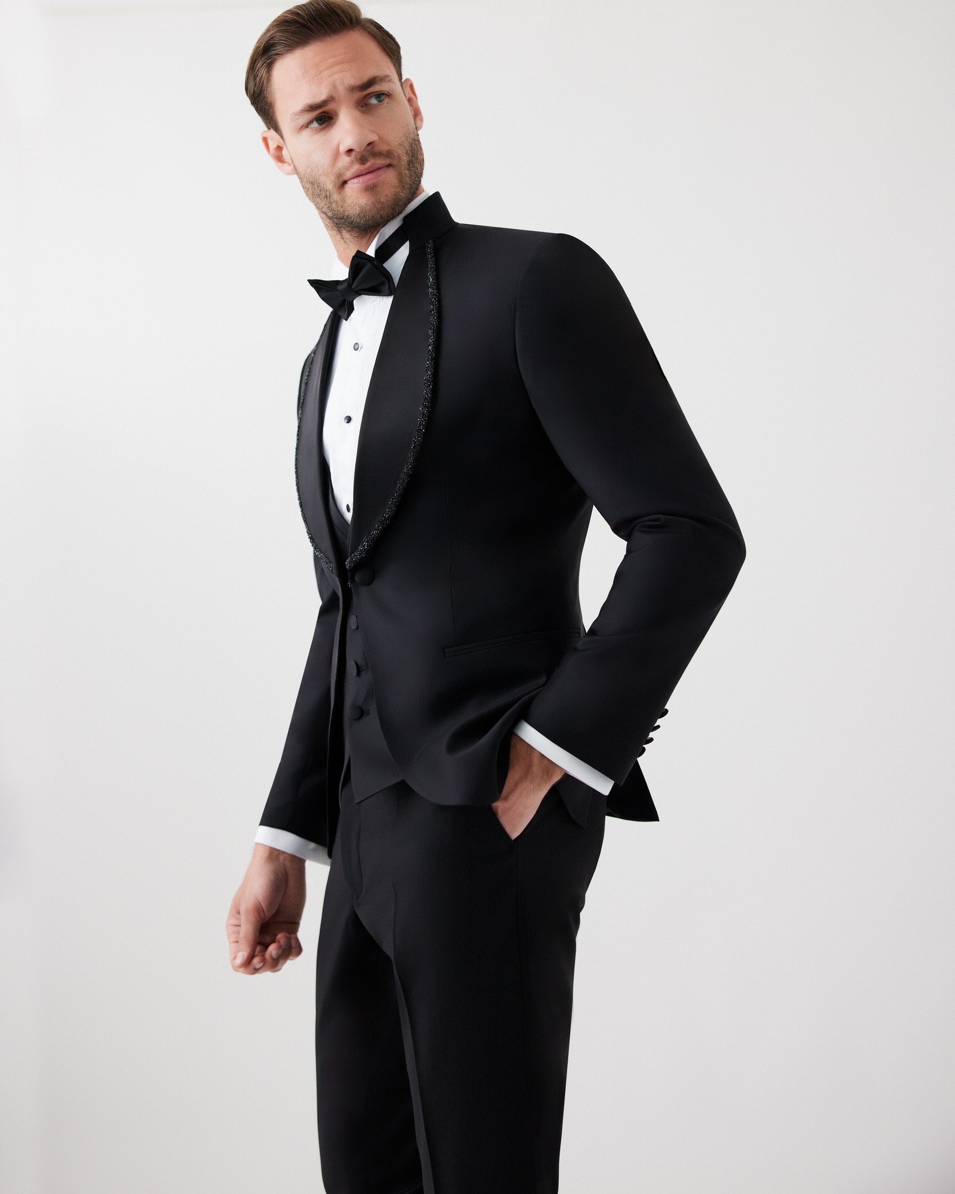 Men's Black Formal Suit with Shawl Lapel - Prome Suit
