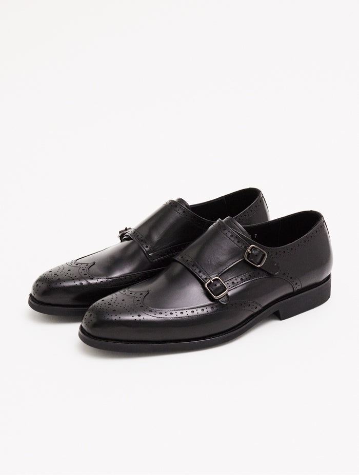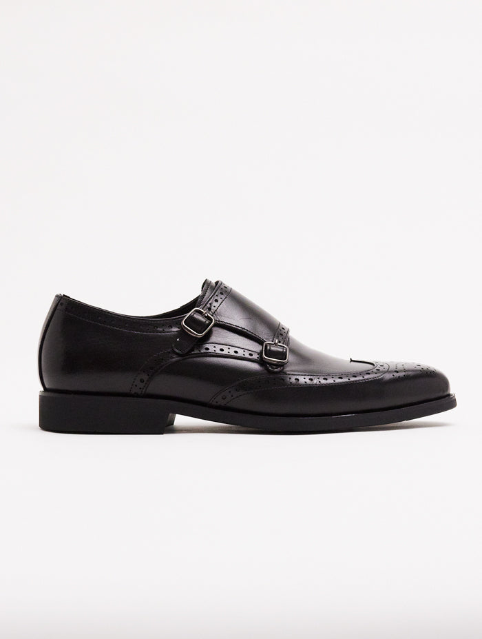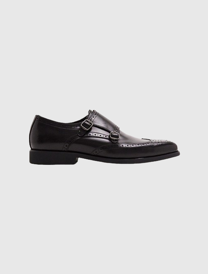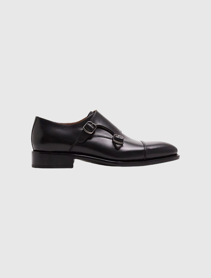 Men's Stylish Black Leather Formal Shoes With Buckles