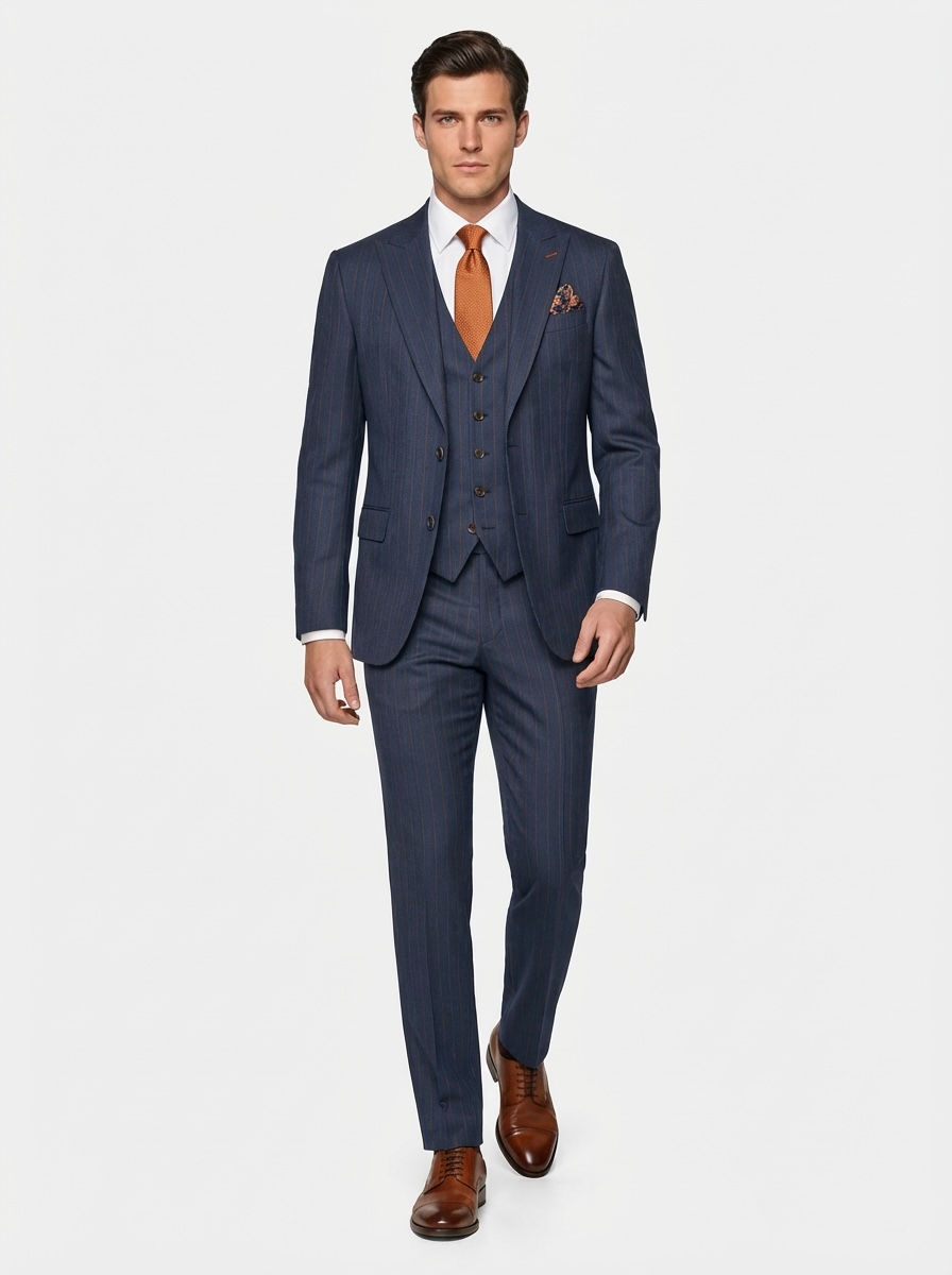 Navy Orange Strip 3 Piece Suit